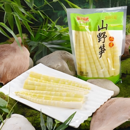 Горные дикие ростки бамбука, также известные как дикие горные побеги бамбука, представляют собой тонкие молодые побеги, растущие в горных районах. Они произрастают в дикой природе и обладают нежным сладковатым вкусом, а также высокой питательной ценностью.